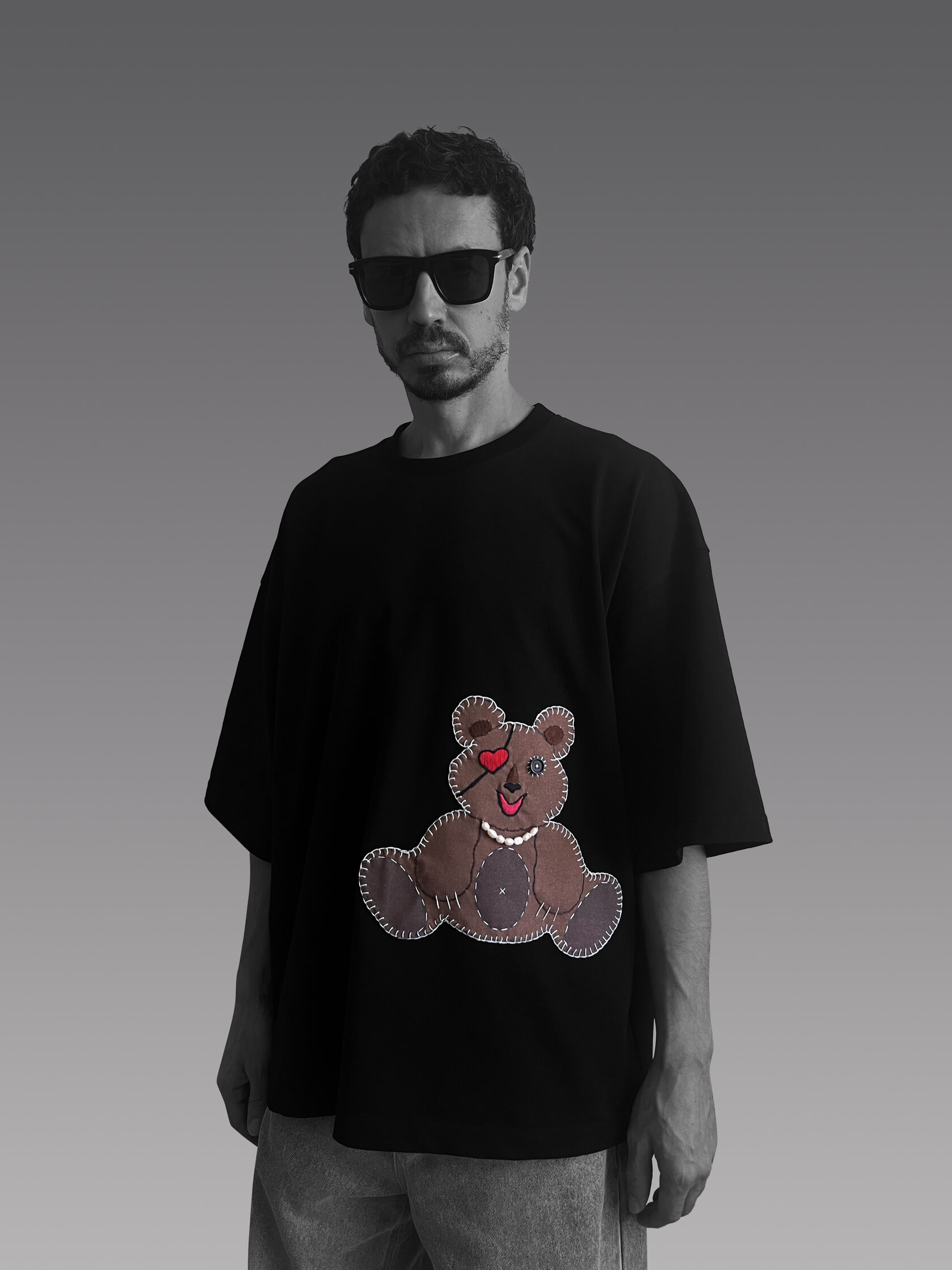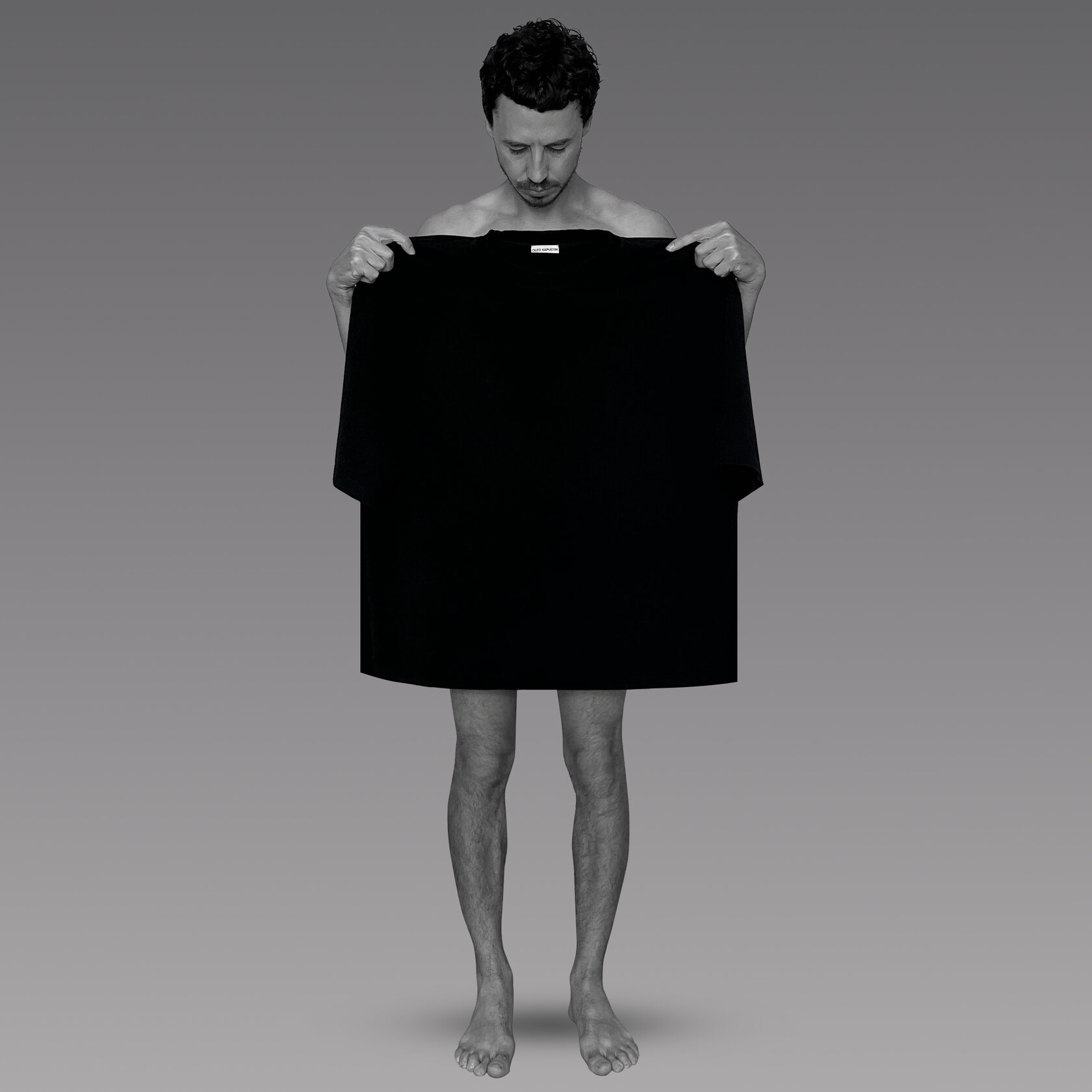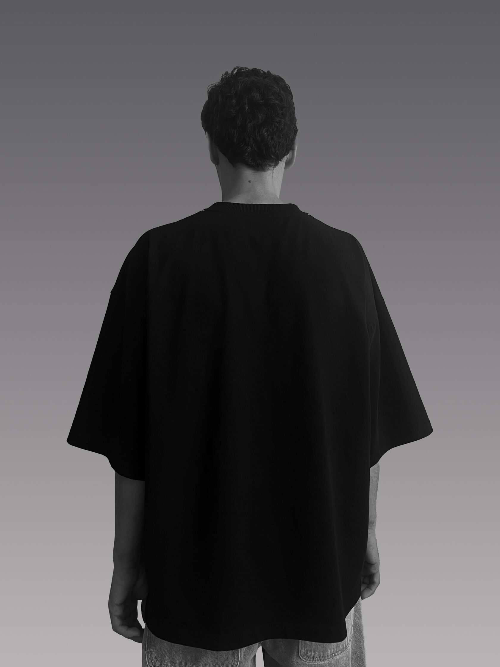 На модели размер M-L. Параметры изделия размера M-L: рост 176-196 см, обхват груди 136 см, длина рукава от горловины 53 см, длина изделия 77 см. Цвет: черный Состав: 98% хлопок, 2% эластан Размер: M-L