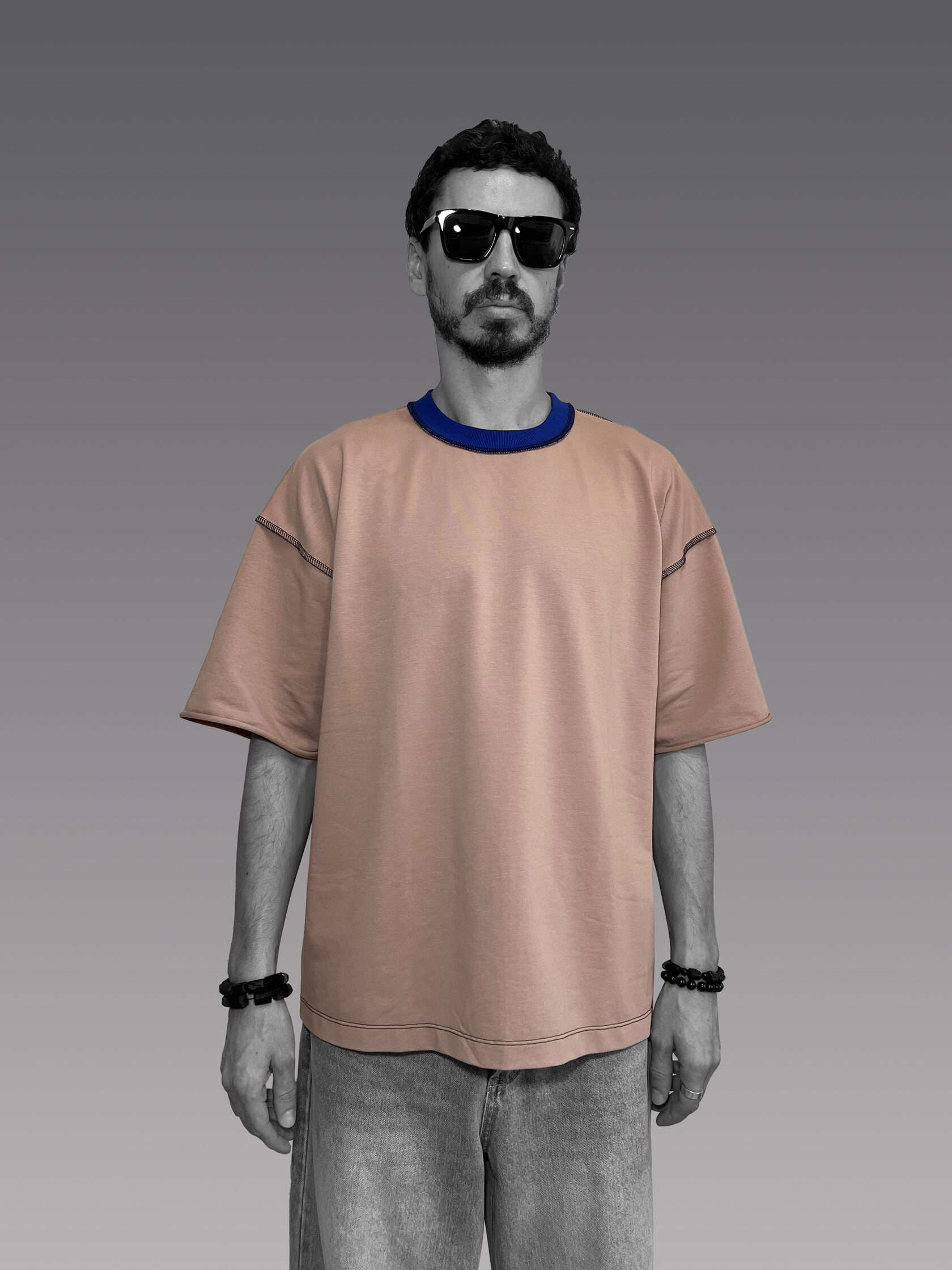 На модели размер М. Параметры изделия размера М: рост 176-180 см, обхват груди 128 см, длина рукава от горловины 46 см, длина изделия 75 см. Цвет: коричневый Состав: 98% хлопок, 2% эластан Размер: M