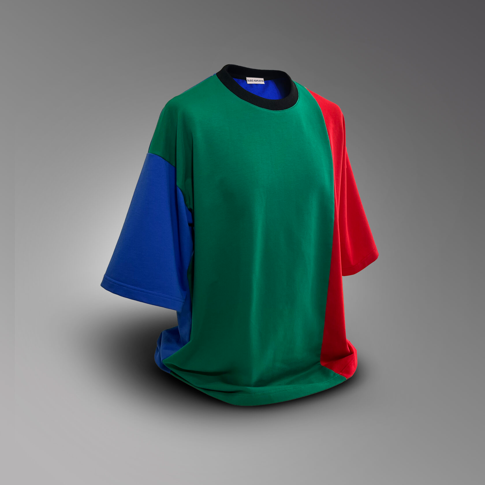 На модели размер M. Параметры изделия размера M: рост 176-196 см, обхват груди 128 см, длина рукава от горловины 51 см, длина изделия 80 см. Цвет: разноцветный Состав: 98% хлопок, 2% эластан Размер: M