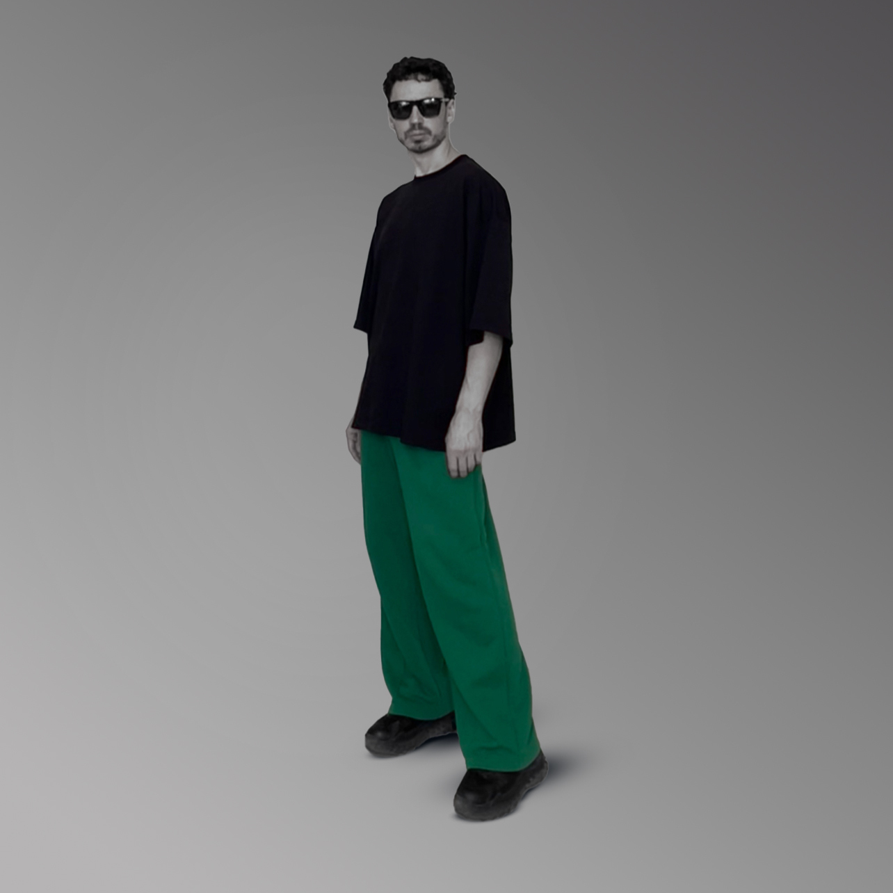 На модели размер М. Параметры изделия размера М: рост 176-180 см, обхват груди 128 см, длина рукава от горловины 46 см, длина изделия 75 см. Цвет: зеленый Состав: 98% хлопок, 2% эластан Размер: М