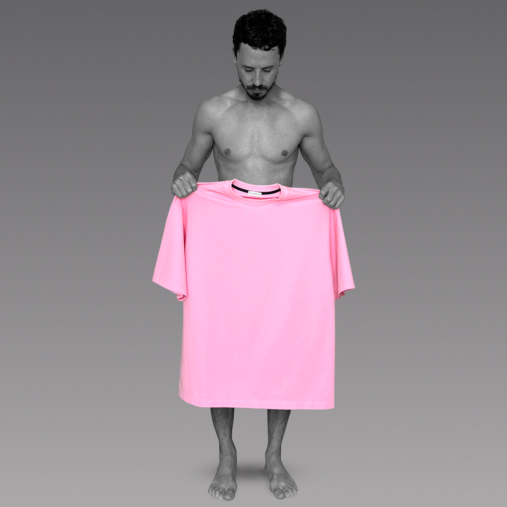 На модели размер М. Параметры изделия размера М: рост 176-180 см, обхват груди 128 см, длина рукава от горловины 51 см, длина изделия 80 см. Цвет: розовый Состав: 98% хлопок, 2% эластан Размер: М
