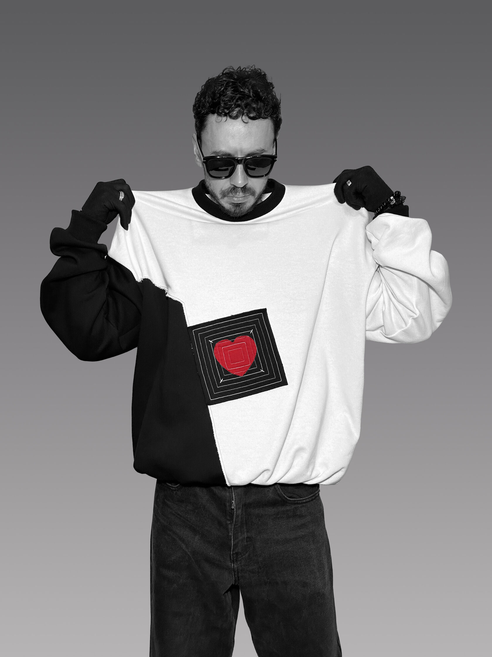 Параметры изделия размера one size: рост 176-190 см, обхват груди 150 см, длина рукава от горловины 90 см, длина изделия 80 см. Цвет: черно-белый Состав: 80% хлопок, 20% полиэстер Размер: one size